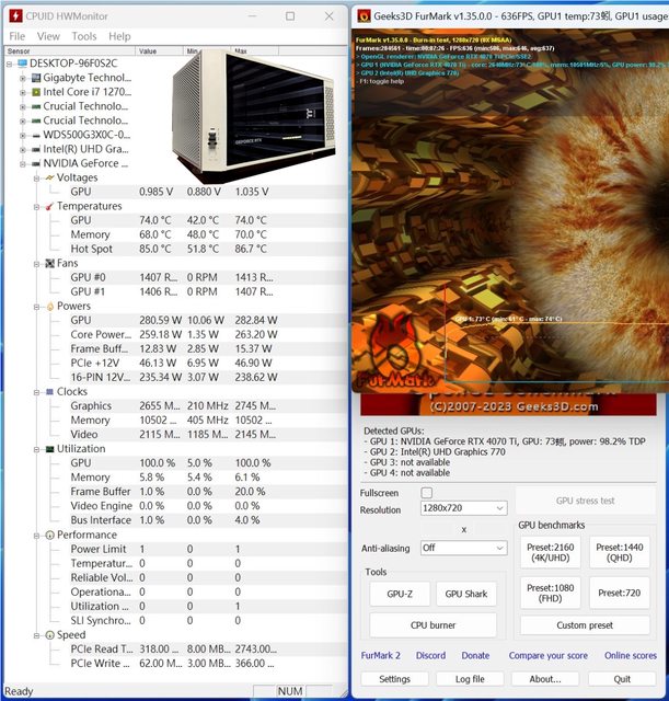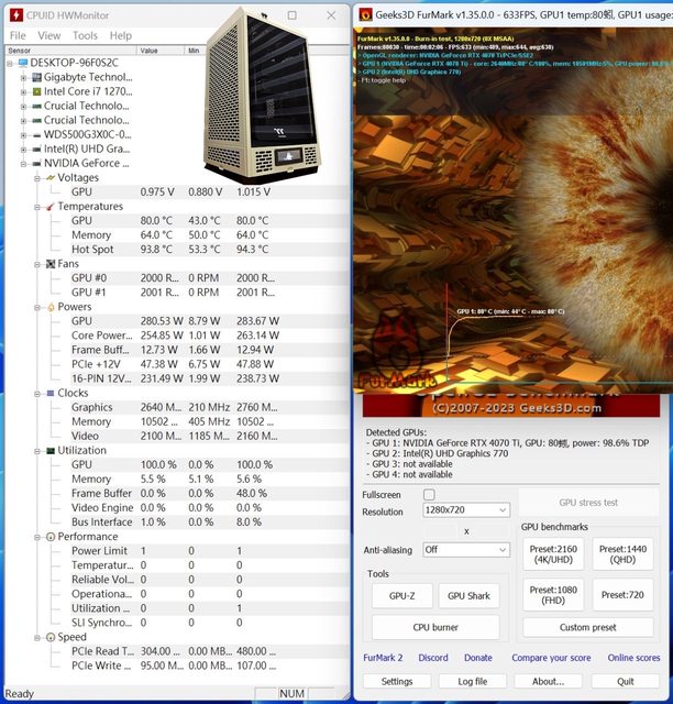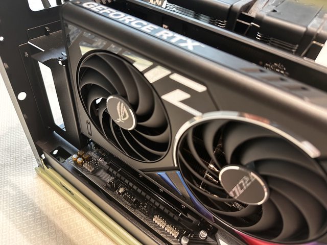 轉,個人由此推斷華碩這張ROG RTX4070Ti顯示卡溫度會受到吊裝影響,也不太適合IO朝