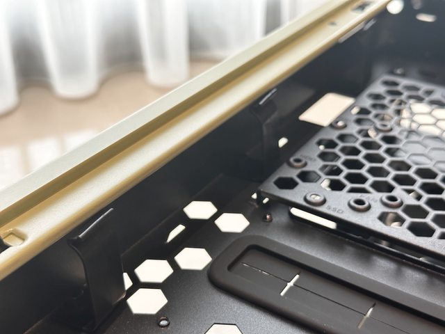 頂蓋與機殼間還有一個塑膠框體,主要功能為線材的走線及藏線空間。