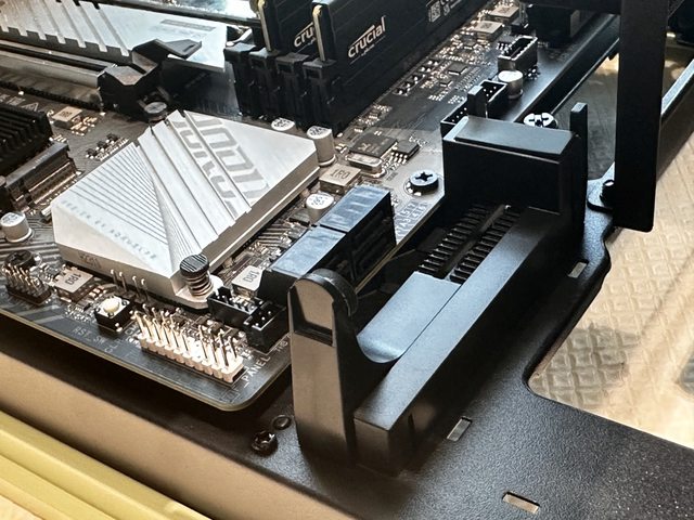 主機板背部的支架能安裝2.5吋及3.5吋裝置,但安裝後可能會與背面風扇衝突。