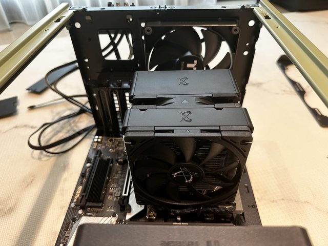 接著相同配置下將機殼橫置,並且將底部稍微墊高確保顯示卡進氣不受影響。