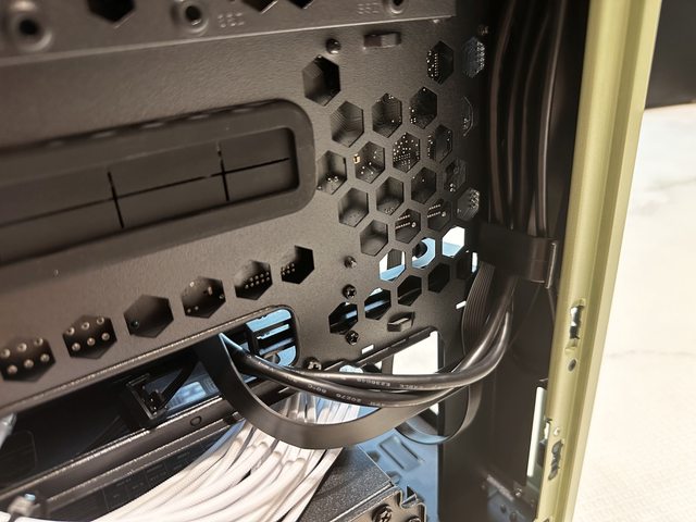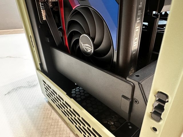 左側為顯示卡安裝空間,最高可支援4槽/380mm長度的顯示卡,安裝RTX4090不成問題。