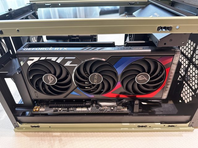 因為Tower 200的顯示卡安裝採用IO朝上的吊裝方式,而華碩30系及40系的多款顯示卡,