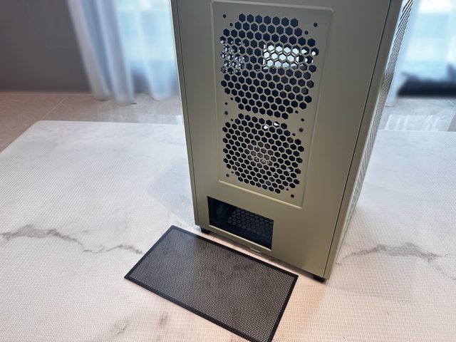 底部為電源安裝位置及遮罩,支援最長22cm的ATX規格電源。遮罩上方設有一個12/14cm風