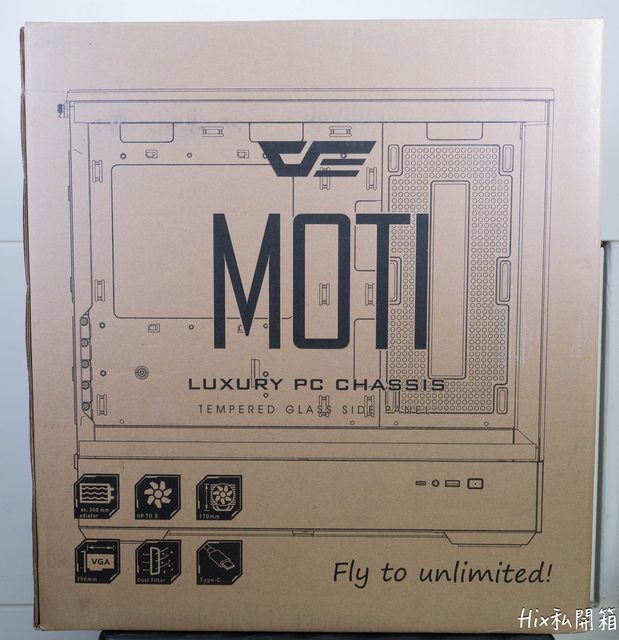 外箱有著這咖機殼的標語 Fly to unlimited!