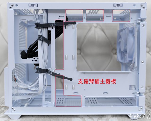背板打開後,紅線的部份就是背插主板會用的的開口