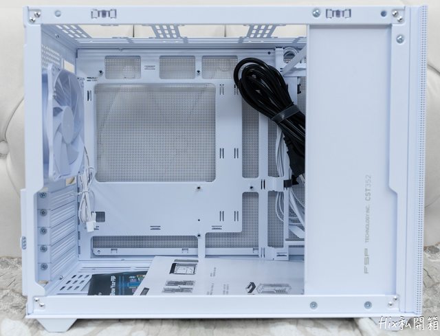 白色蓋板上有著全漢商標以及機殼型號