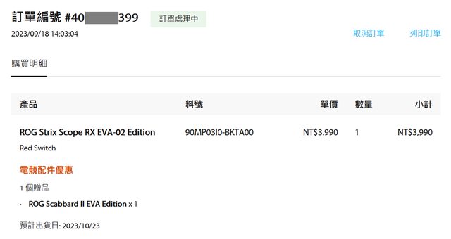 這個明明是在華碩自己官方商城下的預購單