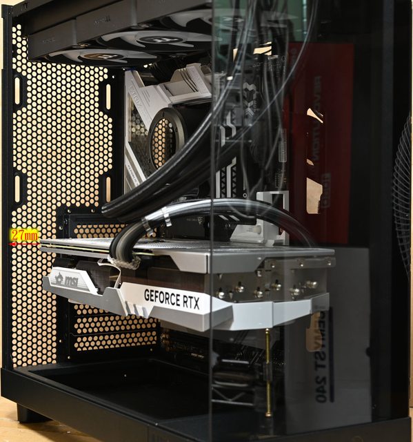 ▼安裝MSI GEFORCE RTX 4070 Ti GAMING X TRIO WHITE(337×140×62mm)時,顯示卡頂