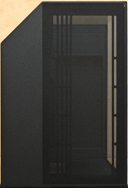▼前方右側斜面網孔板內的風扇採斜向放置,能更有效地將冷空氣往機殼內部輸送,網孔