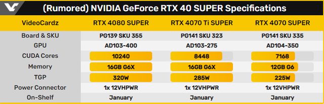 所有 RTX 40 SUPER 型號均計劃於 1 月上架。儘管 NVIDIA 尚未正式確認確切的發布日