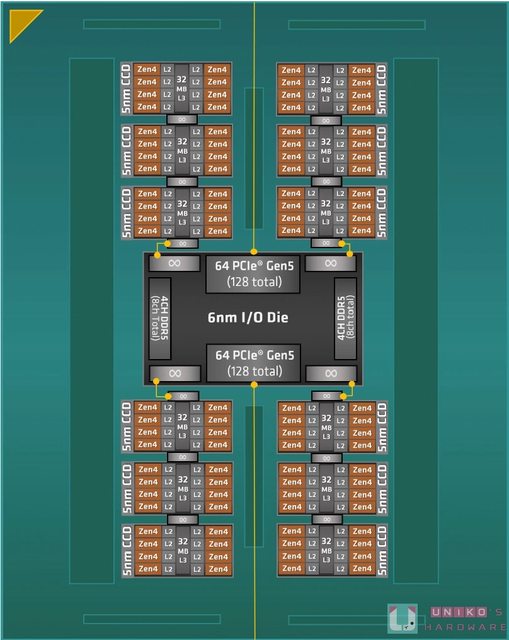 每顆處理器最多有 9 顆 DIE,8 顆 CCD 和 1 顆 I/O DIE。