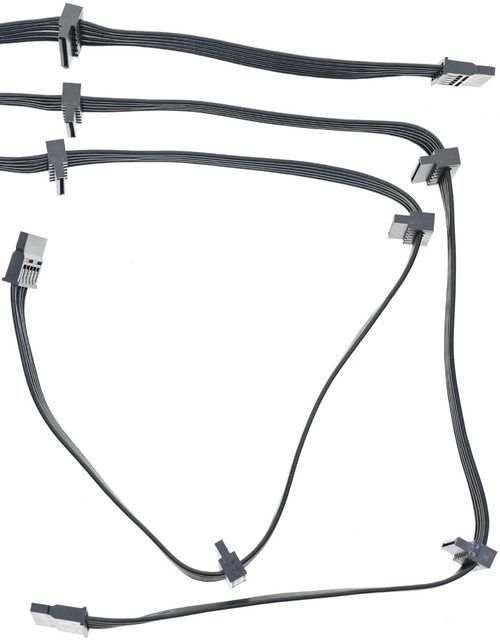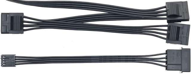▼3條SATA黑色帶狀模組化線路,提供7個直角SATA接頭及3個直式SATA接頭,其中一條配