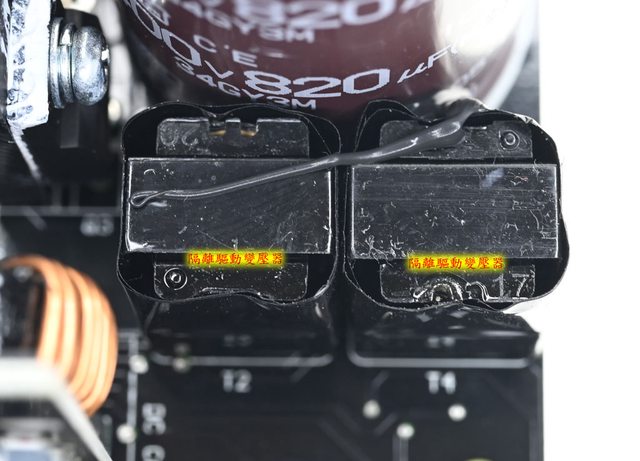 ▼主電路板上有2個共模電感(CM1/CM2)、1個X電容(CX2)及2個Y電容(CY3/CY4),臥式安裝