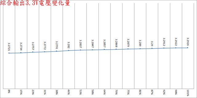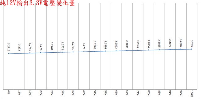 ○偏載測試,12V維持空載,測試3.3V滿載、5V滿載、3.3V/5V滿載的3.3V/5V/12V電壓變