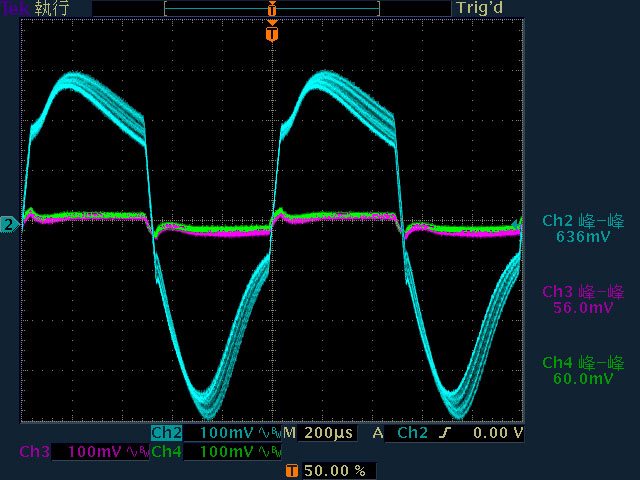 ○輸出無負載至輸出12V/1A時12V無明顯漣波;輸出12V/2A以上12V漣波波形固定;輸出