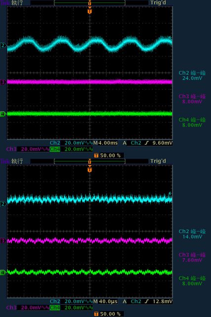 24mV/8mV/8mV,高頻漣波分別為14mV/7.6mV/8mV