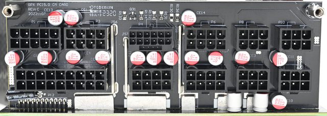 、4個PCIE 6+2P、10個SATA(7個直角,3個直式)、3個省力易拔大4P,提供1條大4P轉小4P
