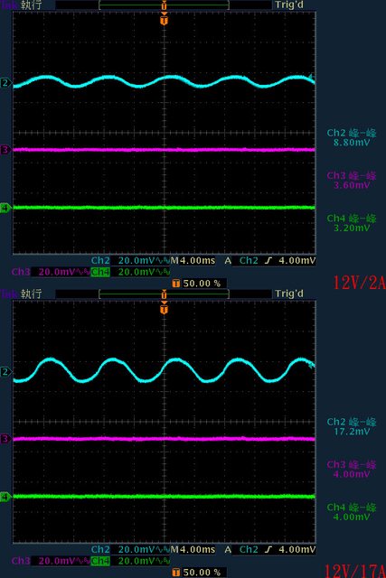 ▼輸出12V/2A以上12V漣波波形固定;輸出12V/17A時12V漣波振幅增大