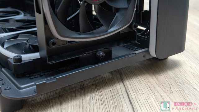 機殼底部預裝了 3 顆 RX120 PWM ARGB 反向風扇 (同時支援 140 mm x 2),若是前方使用
