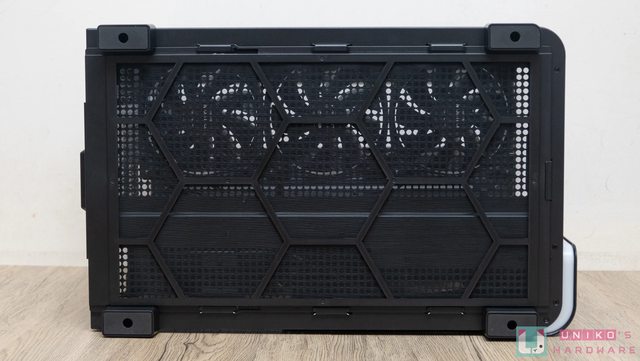 機殼設計相當重視散熱,背部有大面積網孔設計,有助於側邊風扇、電源供應器等進氣。