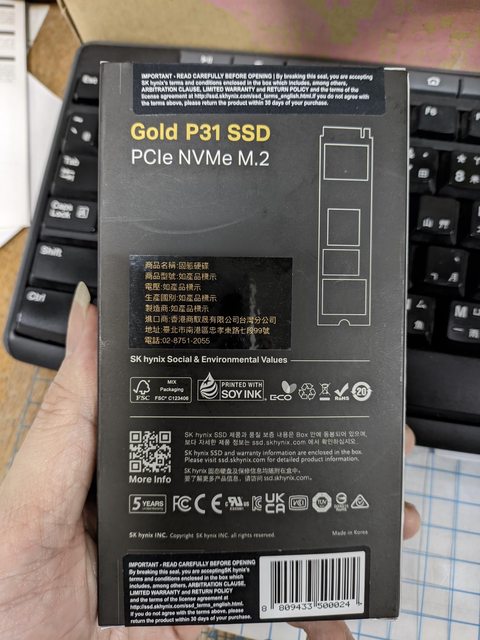 標題[開箱] 極簡開箱 SK hynix Gold P31 2TB
