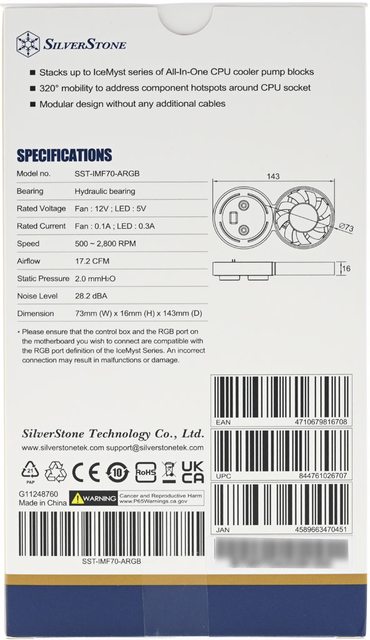 注意:SilverStone銀欣IMF70-ARGB擴充風扇需搭配SilverStone銀欣IceMyst系列一體式
