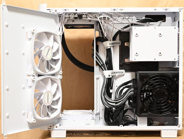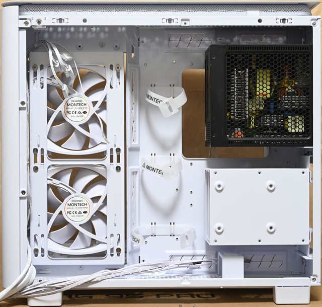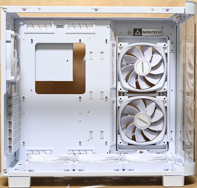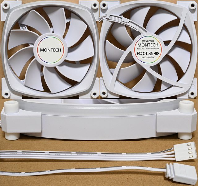 色款RX140 PWM反向風扇,底部預裝3個白色款RX120 PWM反向風扇,後方預裝1個白色款