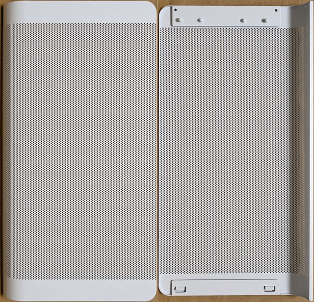 ●具備兩種安裝配置,正面可選擇安裝強化玻璃或是網孔板,安裝網孔板時,右側前方固