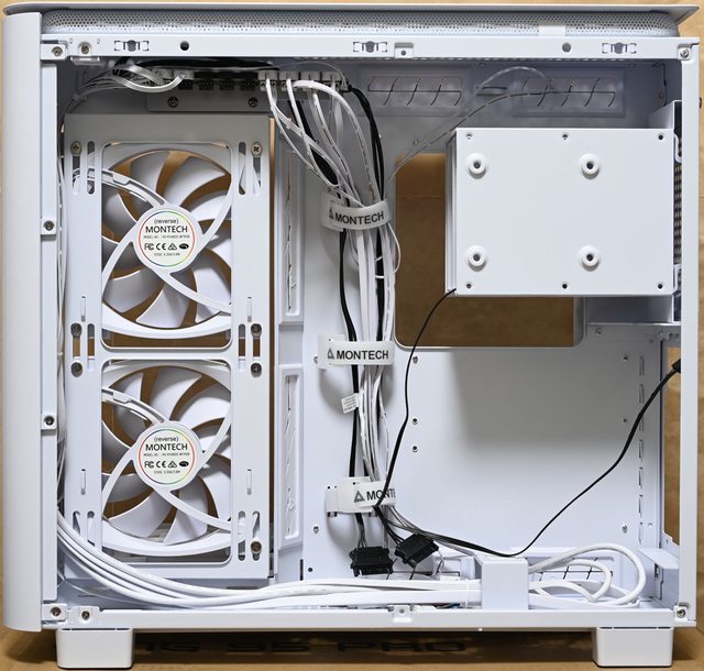底部風扇安裝空間:3個120mm或2個140mm(預裝3個白色款RX120 PWM反向風扇)