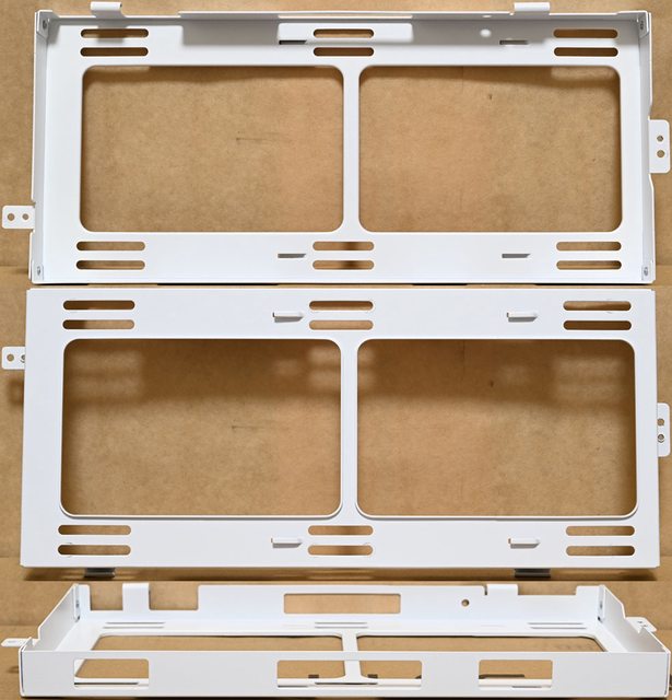 ○正面圓弧角強化玻璃面板、正面網孔板、左艙強化玻璃側板、頂部通風蓋板、右艙通風