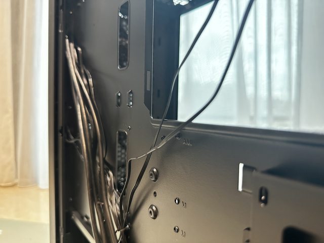 接著裝機...初裝機時遇到了個困難,就是機殼預附的延長線太硬,且出線位置到主機板