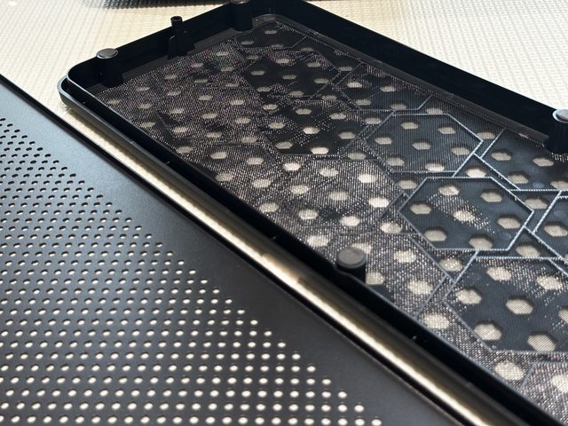 P版本另外提供一片金屬材質的圓形小孔洞面板作替換,六角形面板背面黏貼了不可拆的