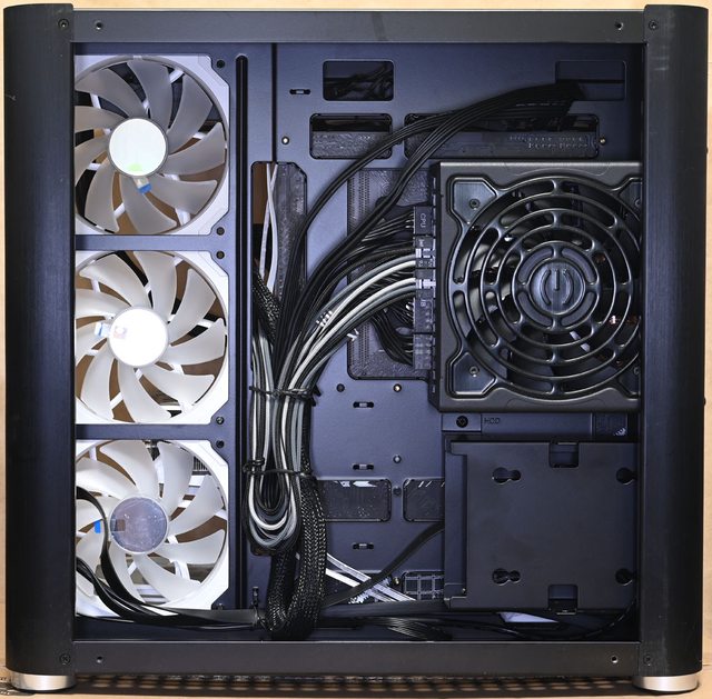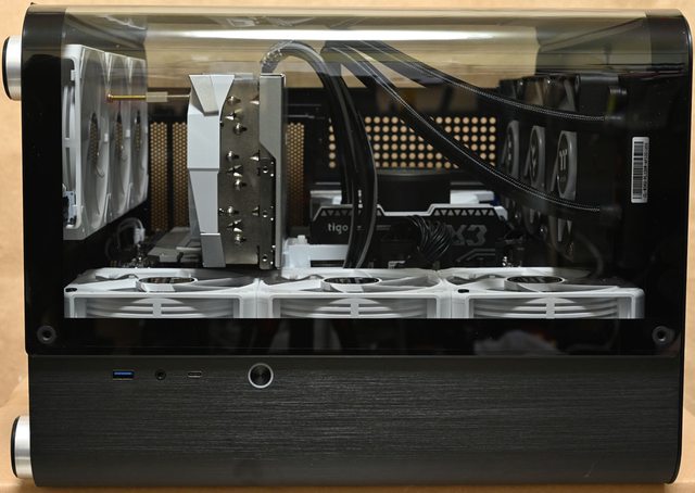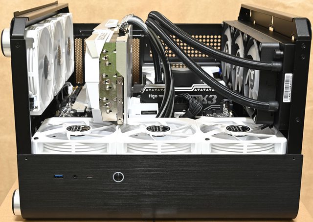 ▼風扇配置二:右側前方3個JONSBO ZG-120魔組扇進氣,上方Thermaltake TH360 V2