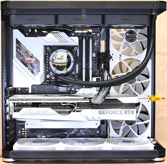 ○頂部/右側前方/底部可裝最多9個120mm風扇,頂部可裝280/360mm一體式水冷散熱排,