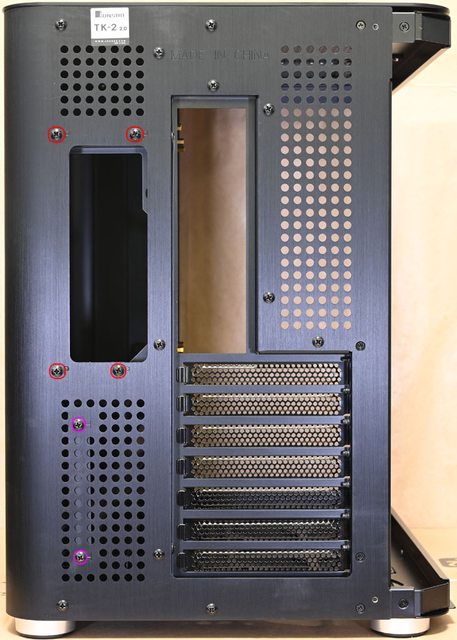 ▼右艙側板有圓孔網狀通風口,使用4個皿頭螺絲固定(紅色框)