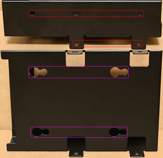 ▼3.5吋/2.5吋可拆卸式固定架兩側有3.5吋固定孔(紅色框,上層3.5吋固定孔只提供4個