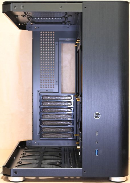 ●採用2.5mm鋁合金板及1mm鋼板組成雙艙結構,支援背插式ATX/Micro-ATX/Mini-ITX主機