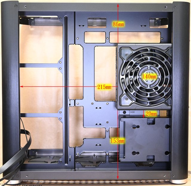 ▼拆卸3.5吋/2.5吋可拆卸式固定架後的右艙,整線空間100mm
