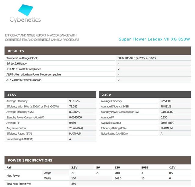 LEADEX VII XG 850W,瞬間峰值負荷達到 235%更勝 ATX3.0 規範
