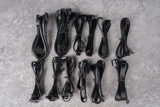 長度 70cm;3 條共 3 個 PCIe 6+2 Pin 接頭,長度 70cm;3 條共 12 個 SATA 接頭
