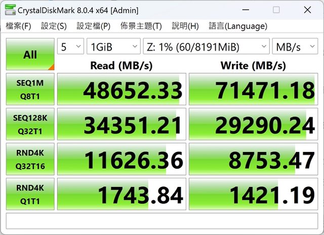 讀取頻寬達 48652MB/s寫入 71471MB/s