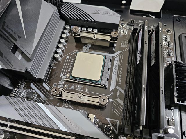 調整完安裝好之後是這樣 錯開主機板散熱裝甲的位置