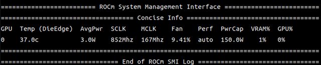 要確定安裝成功就輸入rocm-smi應該會出現基本資訊