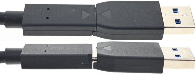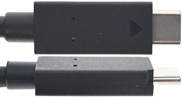 ▼USB-C to USB-A轉接頭與USB-C to USB-C傳輸線接頭兩端的三角形記號要對準(上圖)才