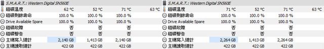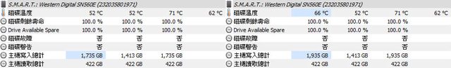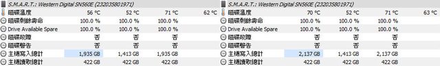 ▼第5次複製開始(左)/結束(右)的HWiNFO溫度數據