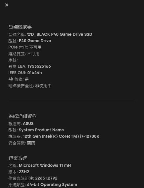 WD_BLACK P40 GAMING DRIVE 1TB電競外接SSD預設格式exFAT,實際可用容量931.51GB,