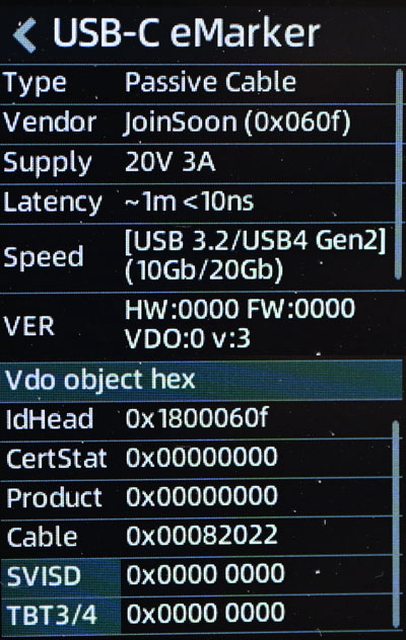 ▼E-Marker資訊內容,支援USB3.2/USB4 Gen2資料傳輸及20V/3A 60W電力傳輸