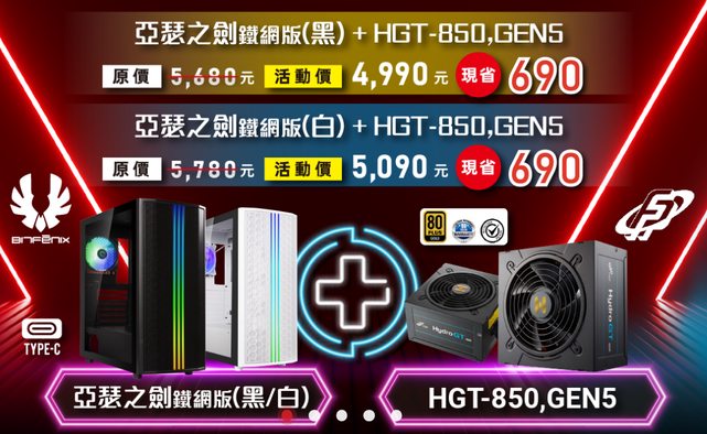 全漢 GT PRO 850W ATX3.0(PCIe 5.0)金牌/半模組, $5090 Hot!