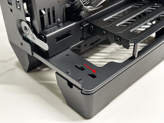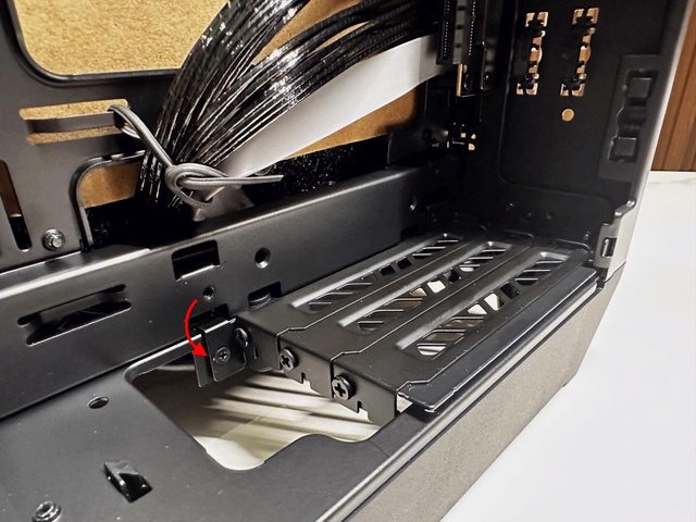 除了能以拓寬模式增加支援顯示卡厚度,還能透過調整固定擋片的位置,讓顯示卡支援長