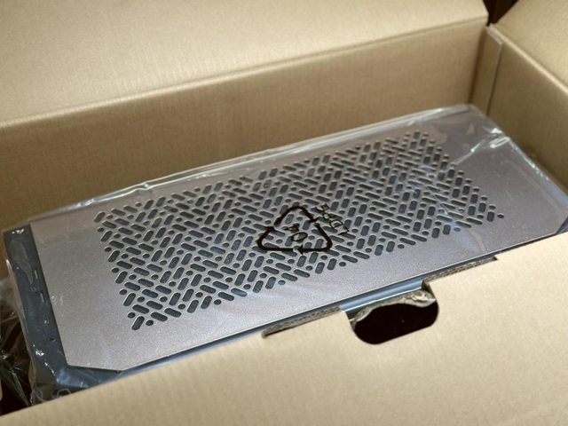 鋁合金面板整體厚度約2mm,整體強度還不錯,面板上開孔為主要進氣位置,內部則貼有